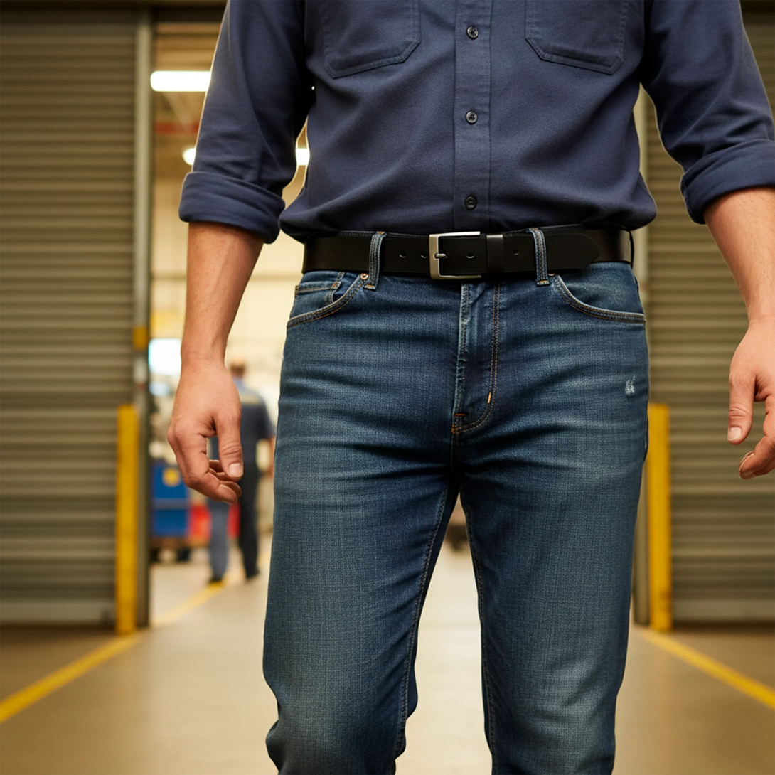 Product: Hombre Cinturón de Cuero Personalizado – Cuero Genuino Negro